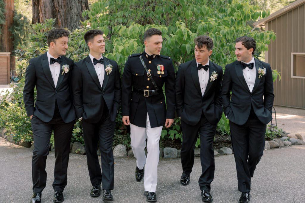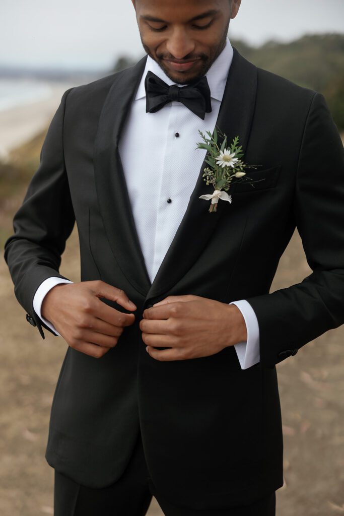 You truly cannot go wrong with the black tuxedo. They are classy, they are timeless, they make everyone look like a bo$$ or a very handsome spy, or both. There are not too many opportunities to wear a full tuxedo out here on the casual Monterey Bay, so why not step it up for your wedding, make it a day that is unlike any other wear the black tuxedo? You will not regret it.